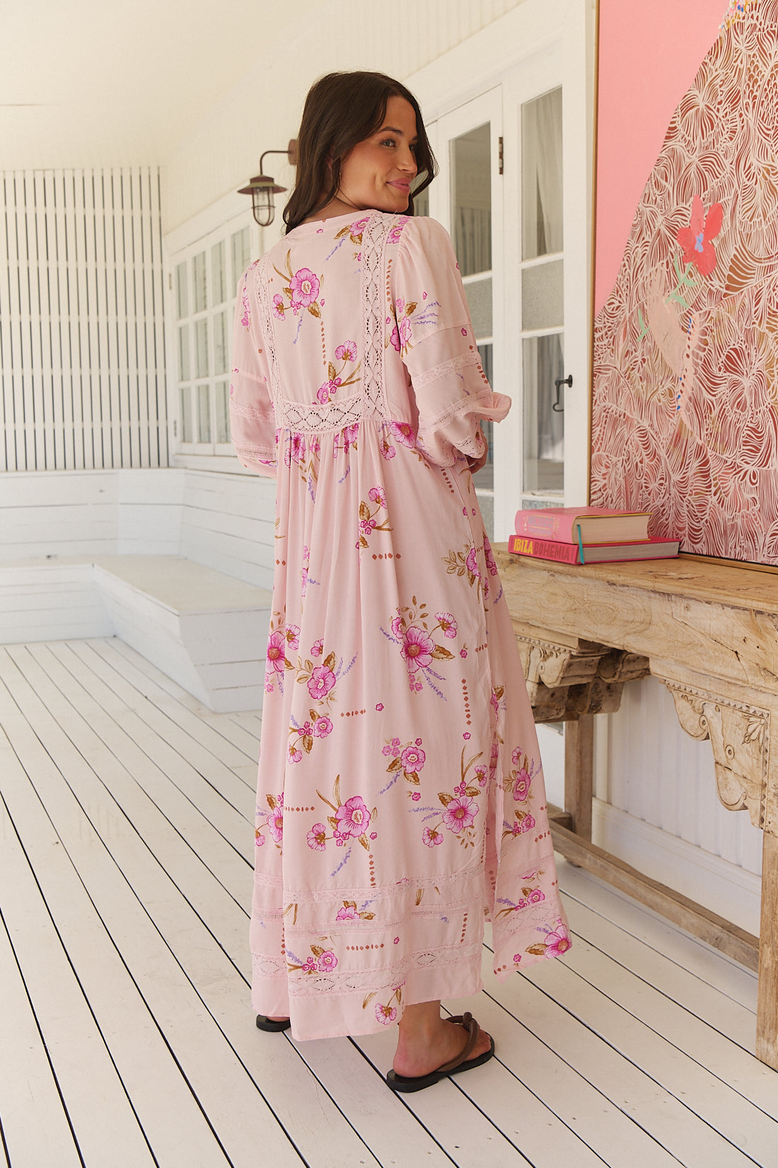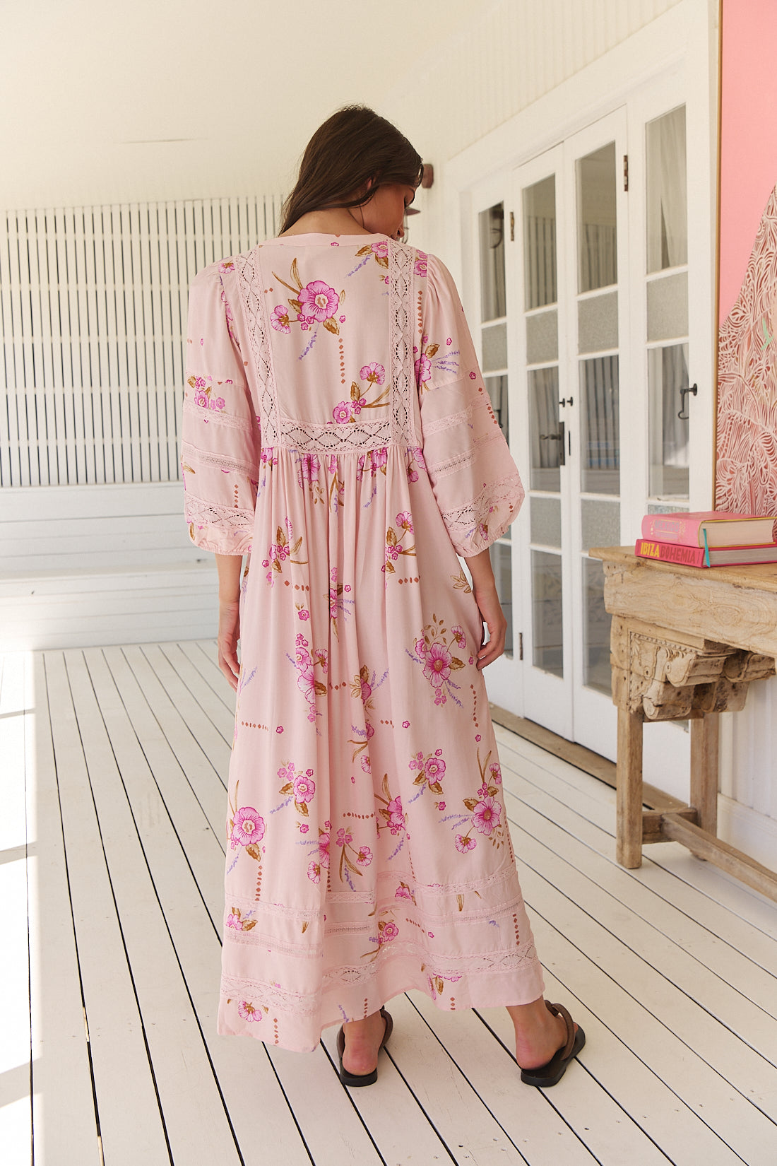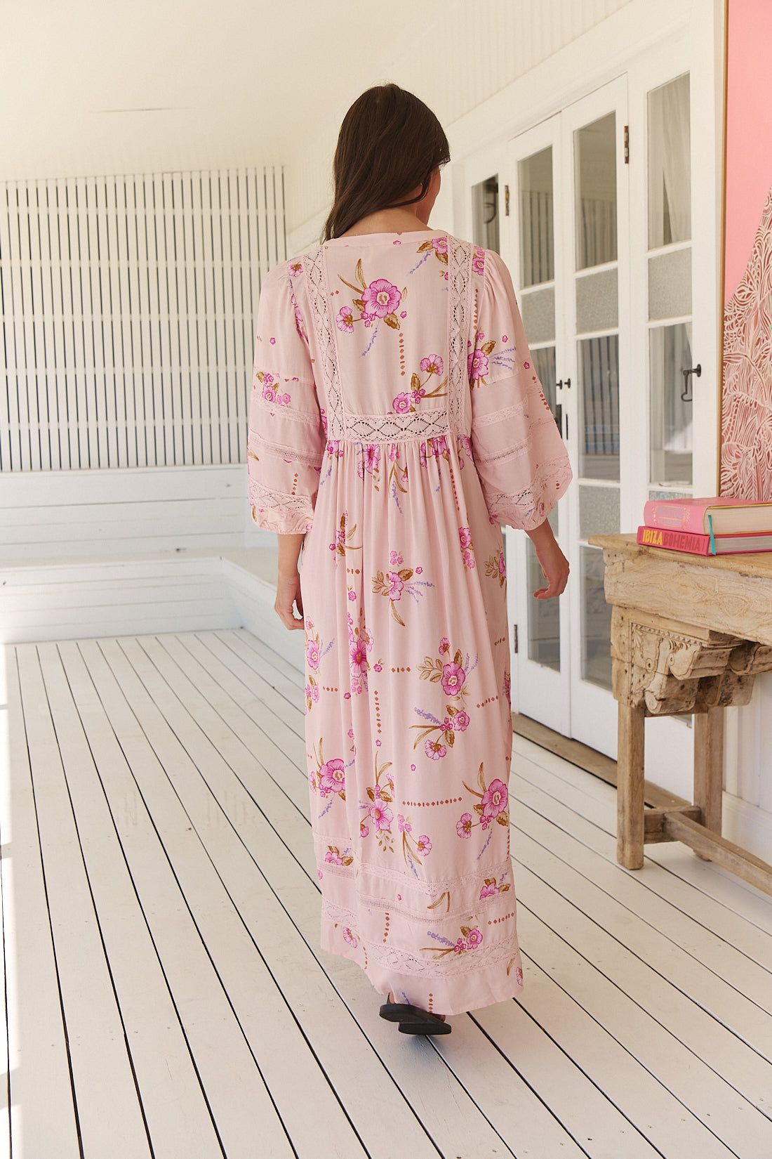 Jaase Meadow Maxi Dress with V Neck Button Bodice - Blushing Fields