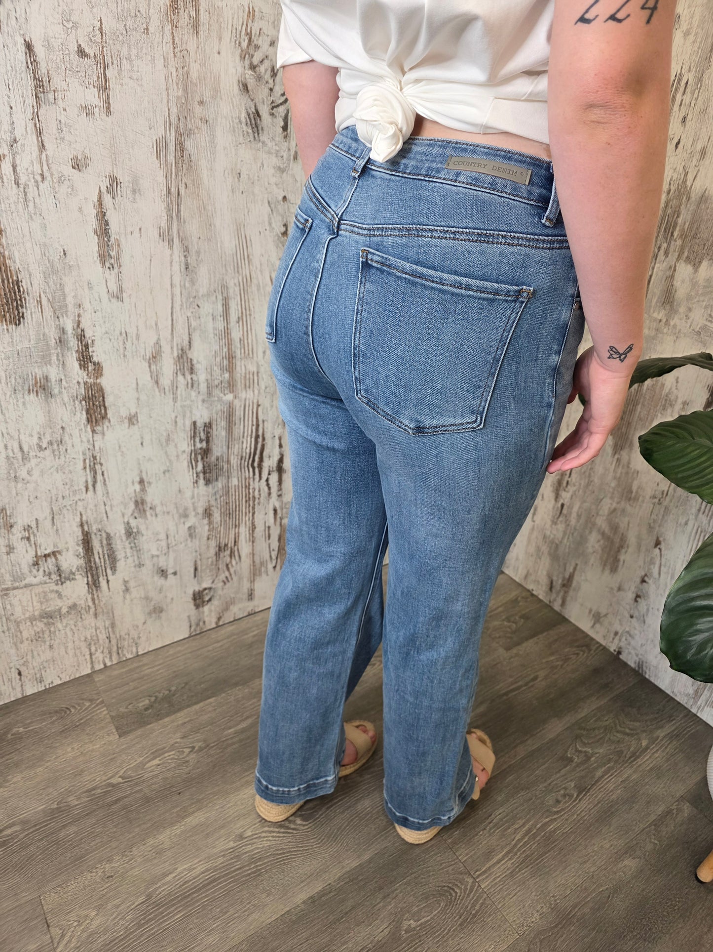 Country Denim Mid High Rise Straight Denim Jeans - Washed Light Blue