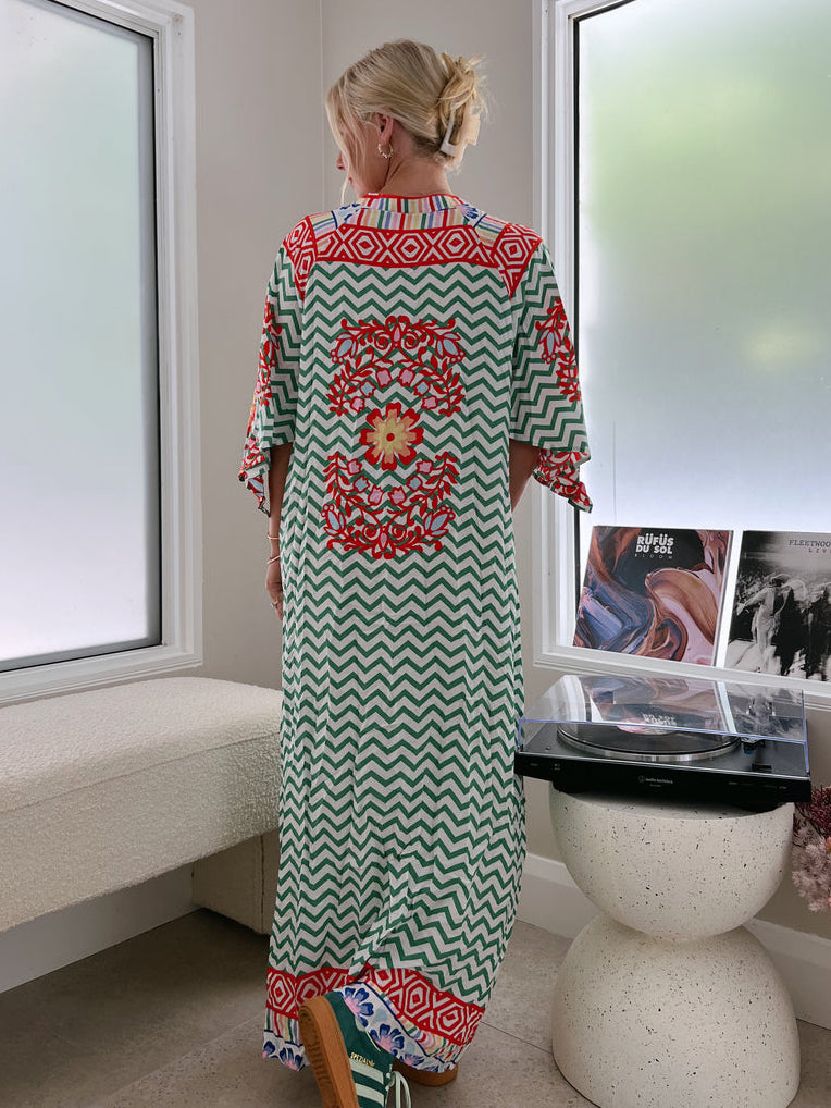 Jaase Bree Maxi Dress with V Neck Button Bodice Hankerchief Sleeve - Ziggy Za