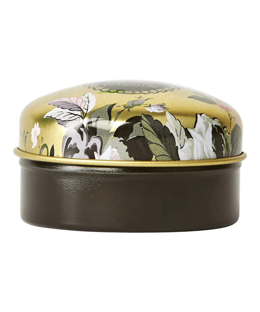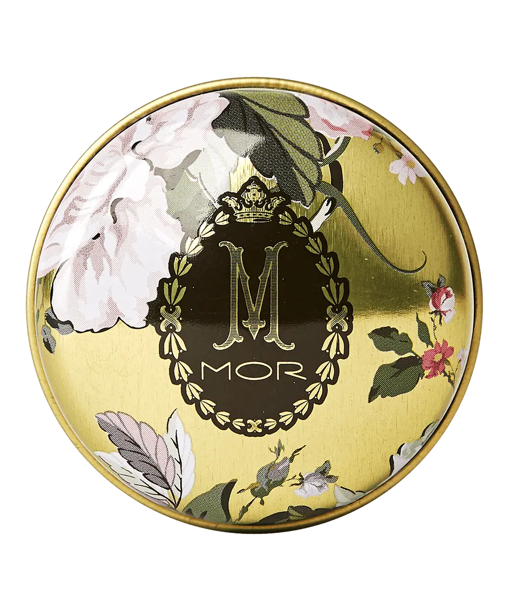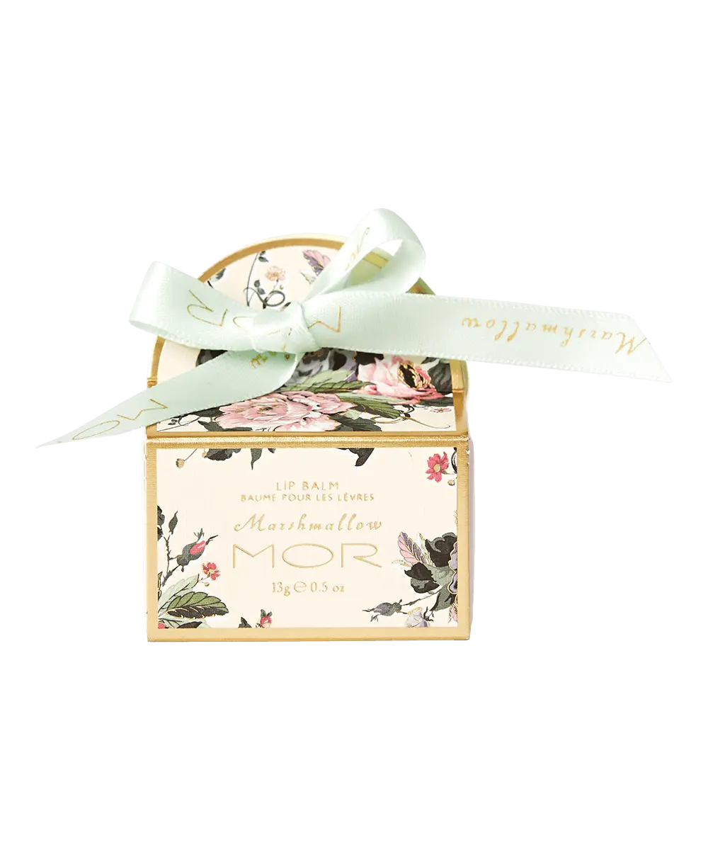 The petite box, decorated with the Marshmallow floral pattern is inspired by a classical beautiful English Rose Garden with a touch of Victoriana and gold foiled for a luxurious feel on textured linen paper. The round tin housing the balm is also printed with the same floral pattern and completed with the MOR Marshmallow emblem on the top.