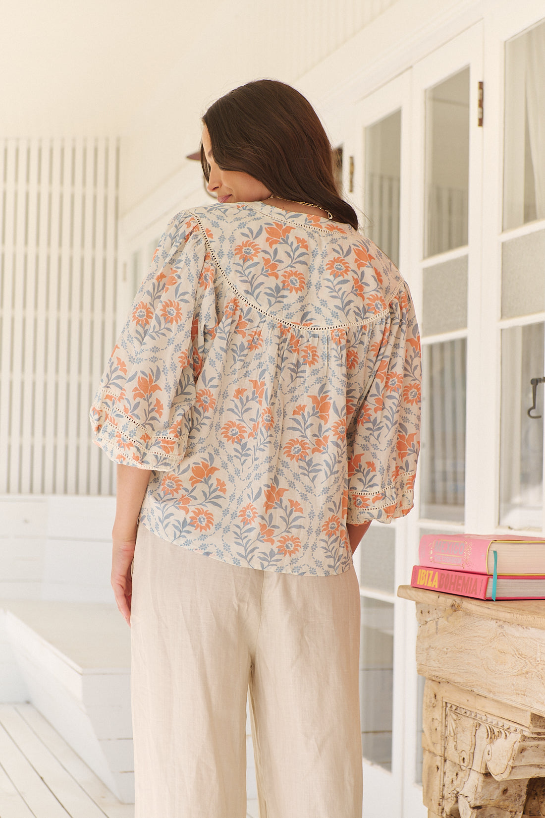 This Carla Top flowy top is featured with v-neckline and for added shape. Team this blouse with our favourite Denim or our Joplin Linen pants for a cute summery look, along with our white Alfie & Evie sneakers.