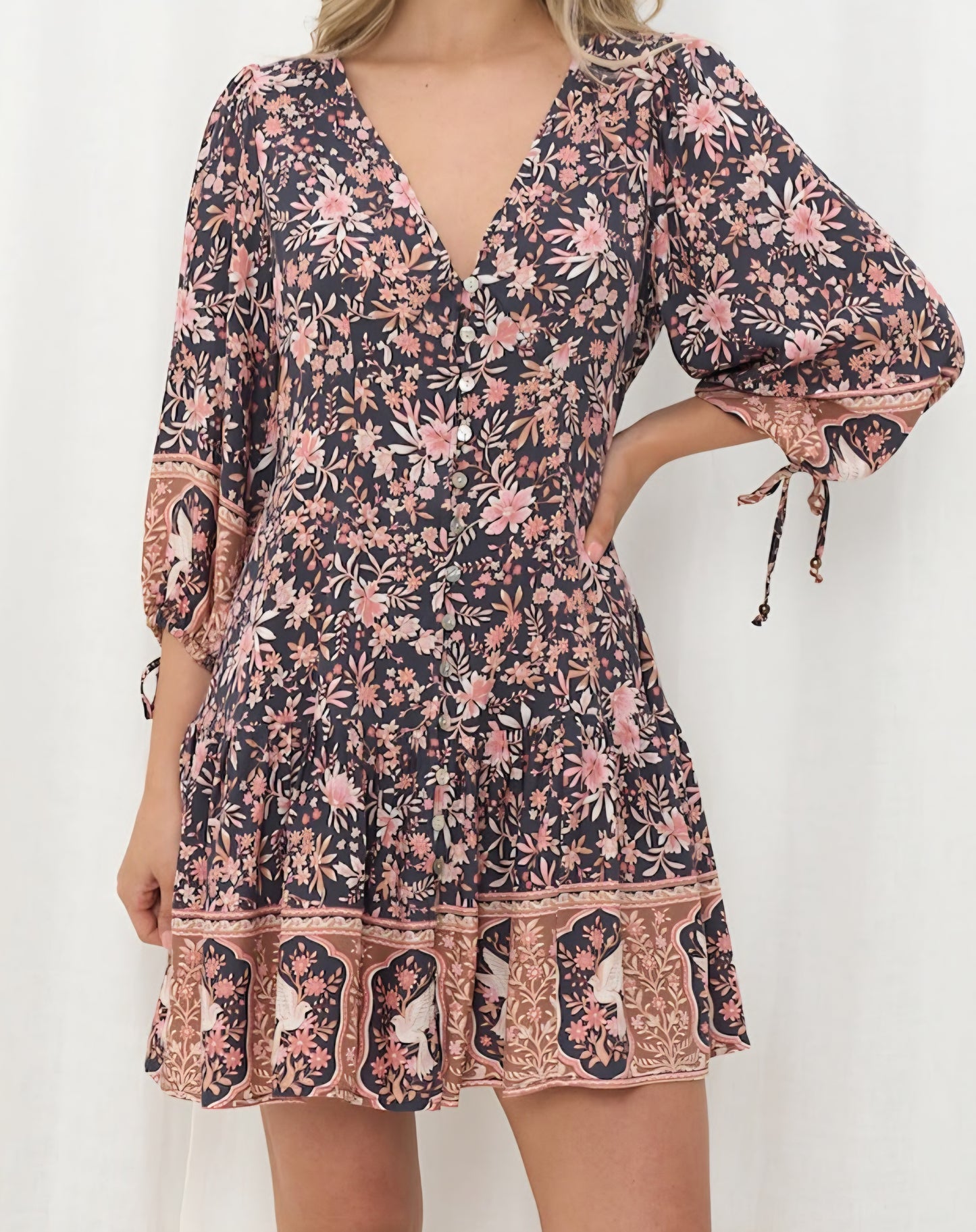 Iris Maxi Hazel Mini Dress with V-Neck Buttoned - Deja