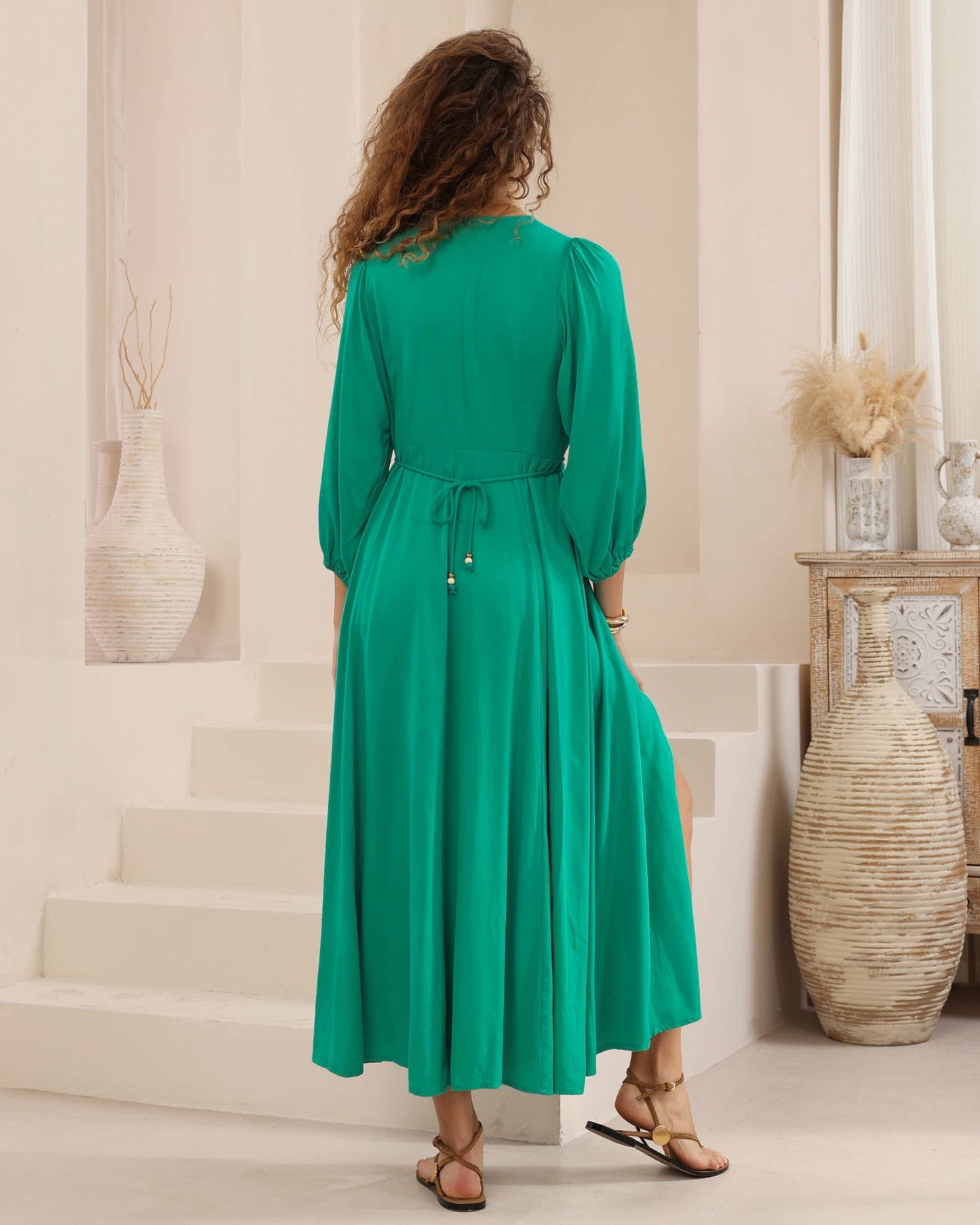 Iris Maxi Anita Maxi Dress with V-Neck Sleeve Empire Waist - Jade Green - Style House Fashion Iris Maxi
