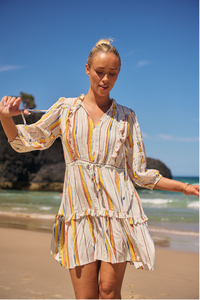 Introducing the REMY MINI DRESS by Jaase from this stunning print COLOURED SANDS. Our REMY Mini Dress is elegant and versatile addition to any fashionista's wardrobe.