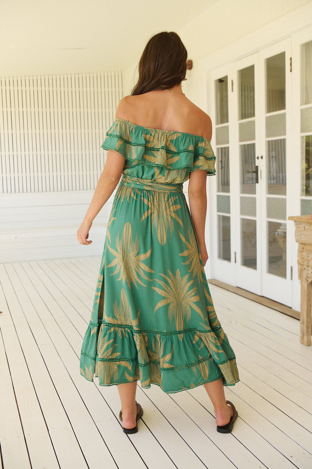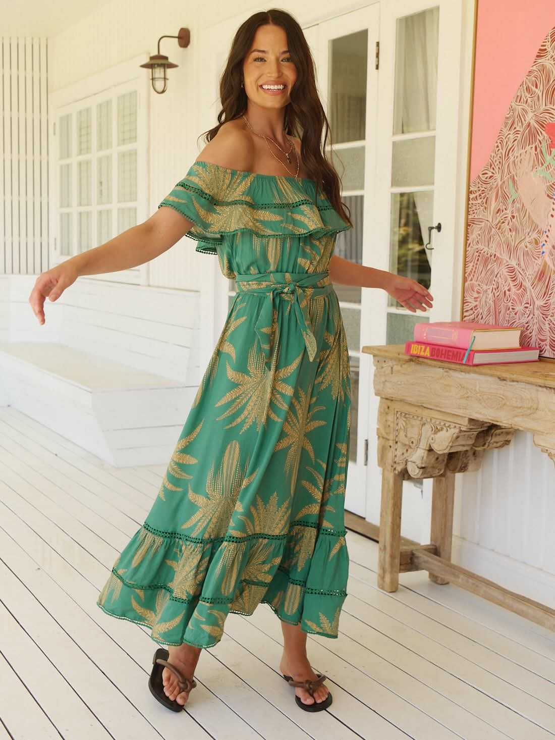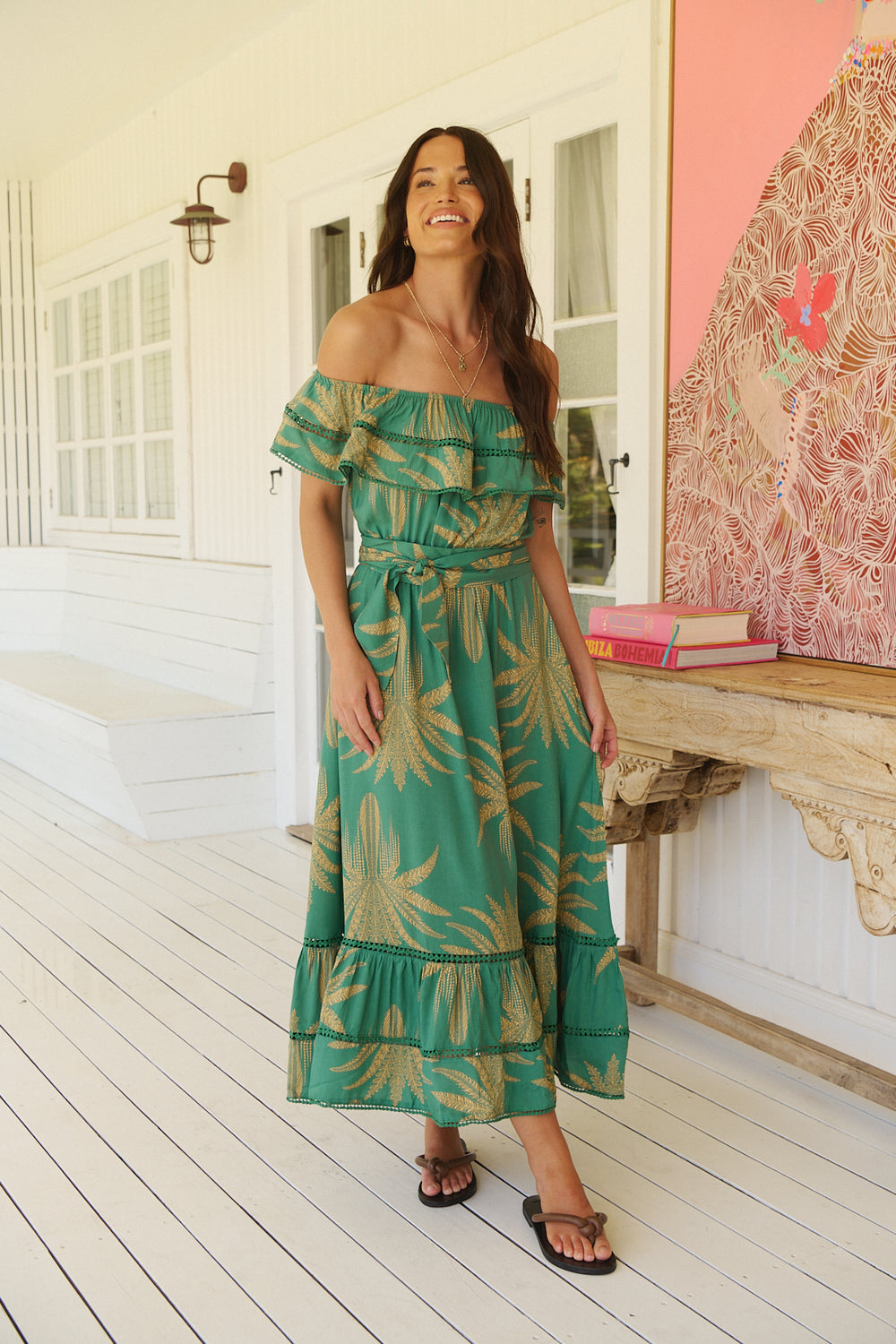 Jaase Romy Maxi Dress with Elastic Waist Off Shoulder Frilled Detail - Island Luxe