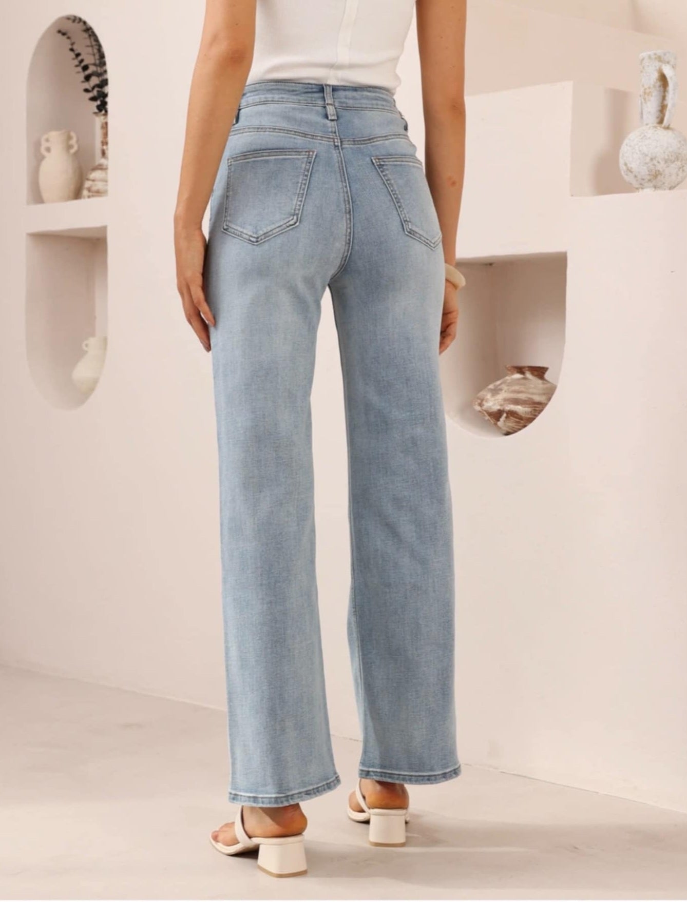 Regular price $49.95Iris Maxi MOLLIE Mid-High Rise Straight Leg Stretch Denim Jeans - Light Blue