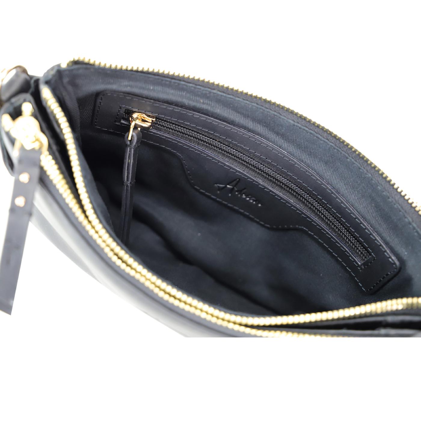 Adessa Derby Genuine Leather Crossbody Wallet Bag - Nero Black
