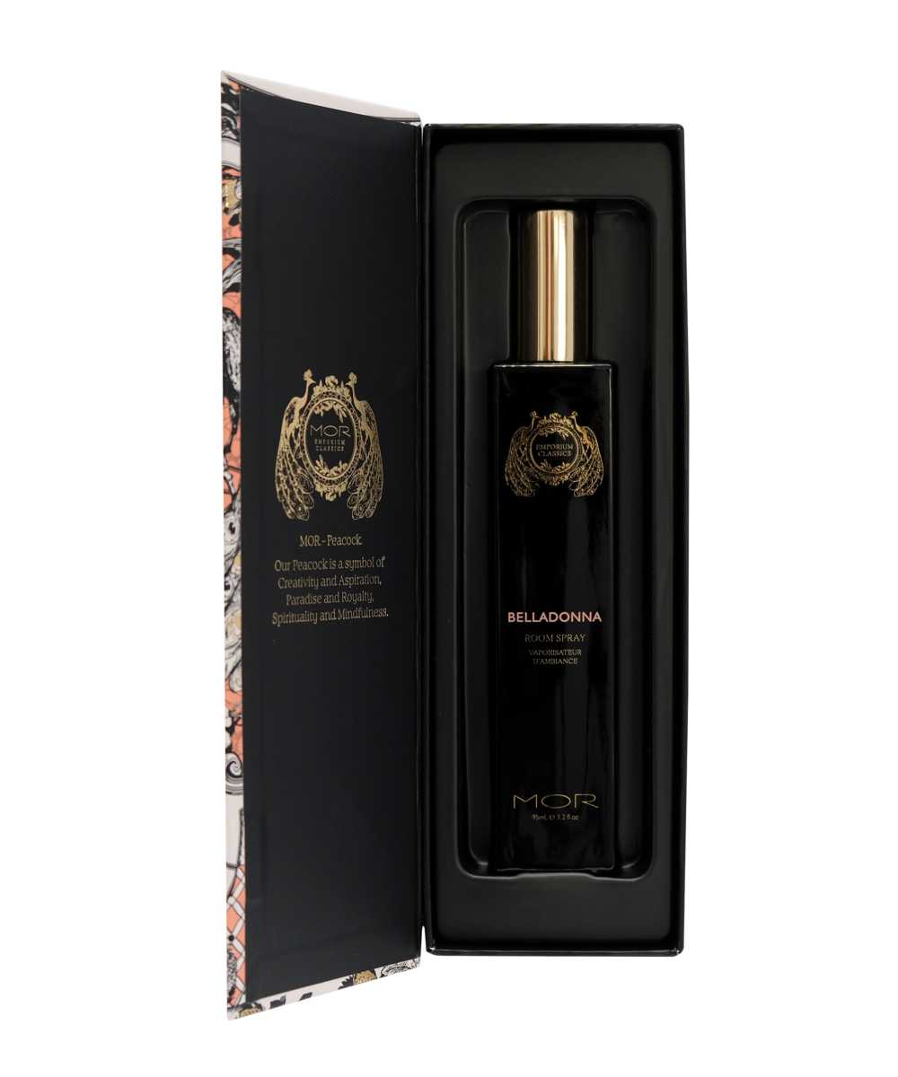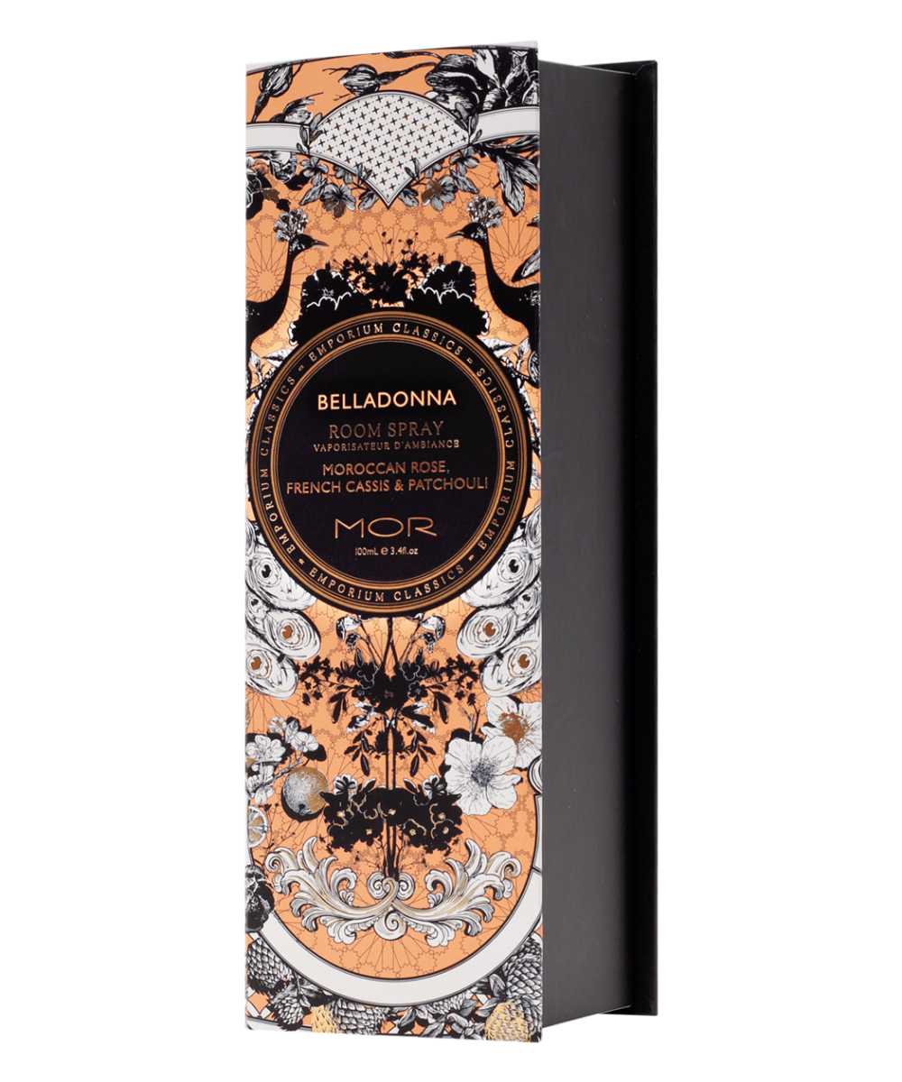 A signature Belladonna fragranced Room Spray presented in an elegant black glass bottle to add instant aroma and ambiance to any space.