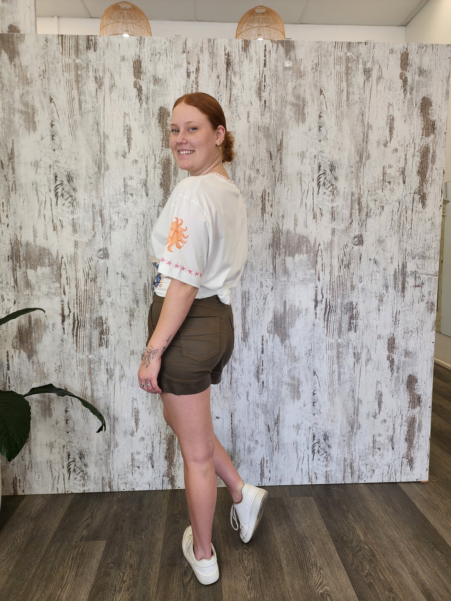 Our JODIE Khaki Denim Cargo Shorts by Country Denim are the epitome of comfort and style for spring snd summer. Crafted from quality soft stretch denim, these high-waisted shorts offer a flattering fit that move with you.