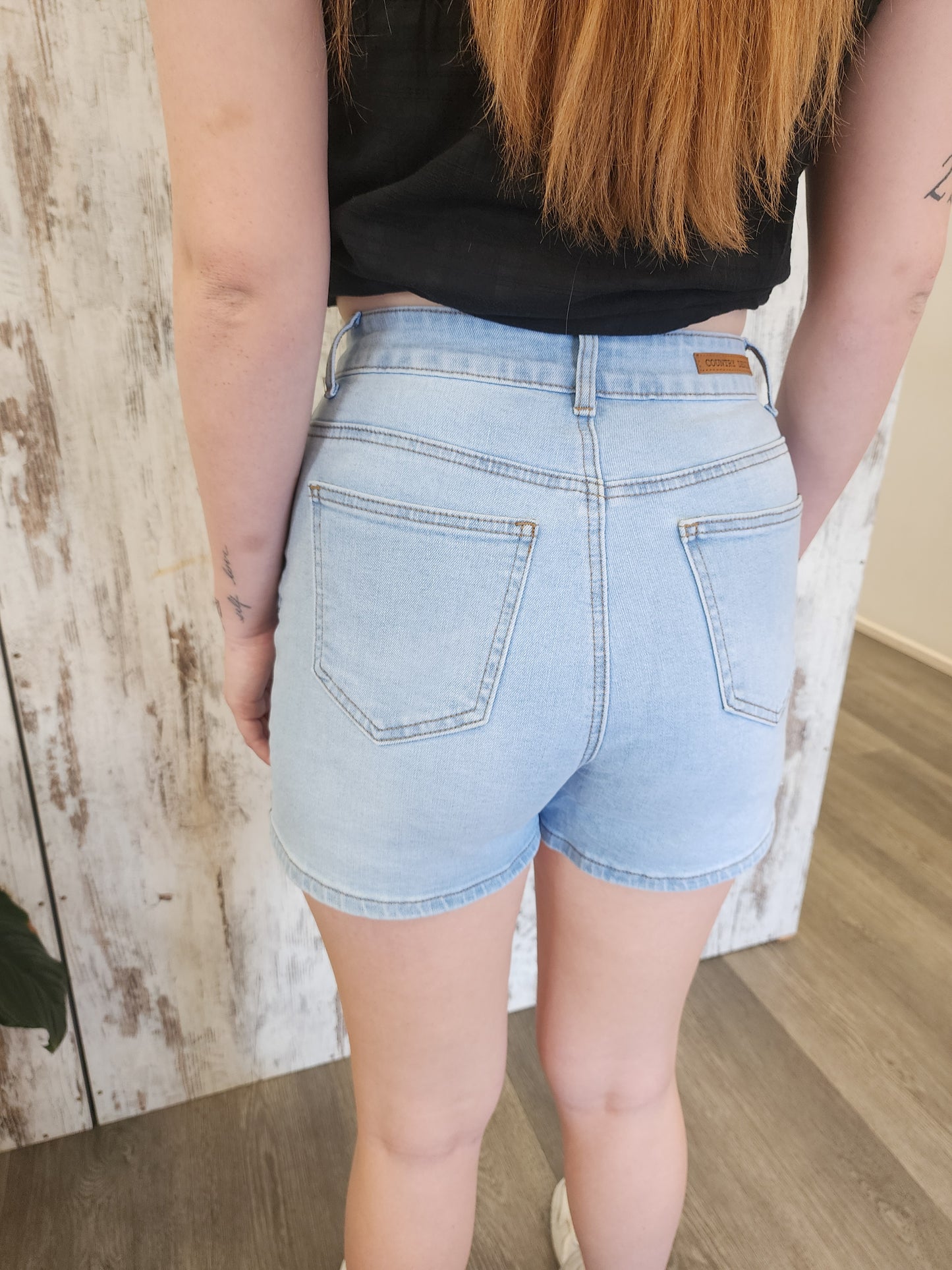 Country Denim Lilly High Rise Stretch Shorts - Light Blue