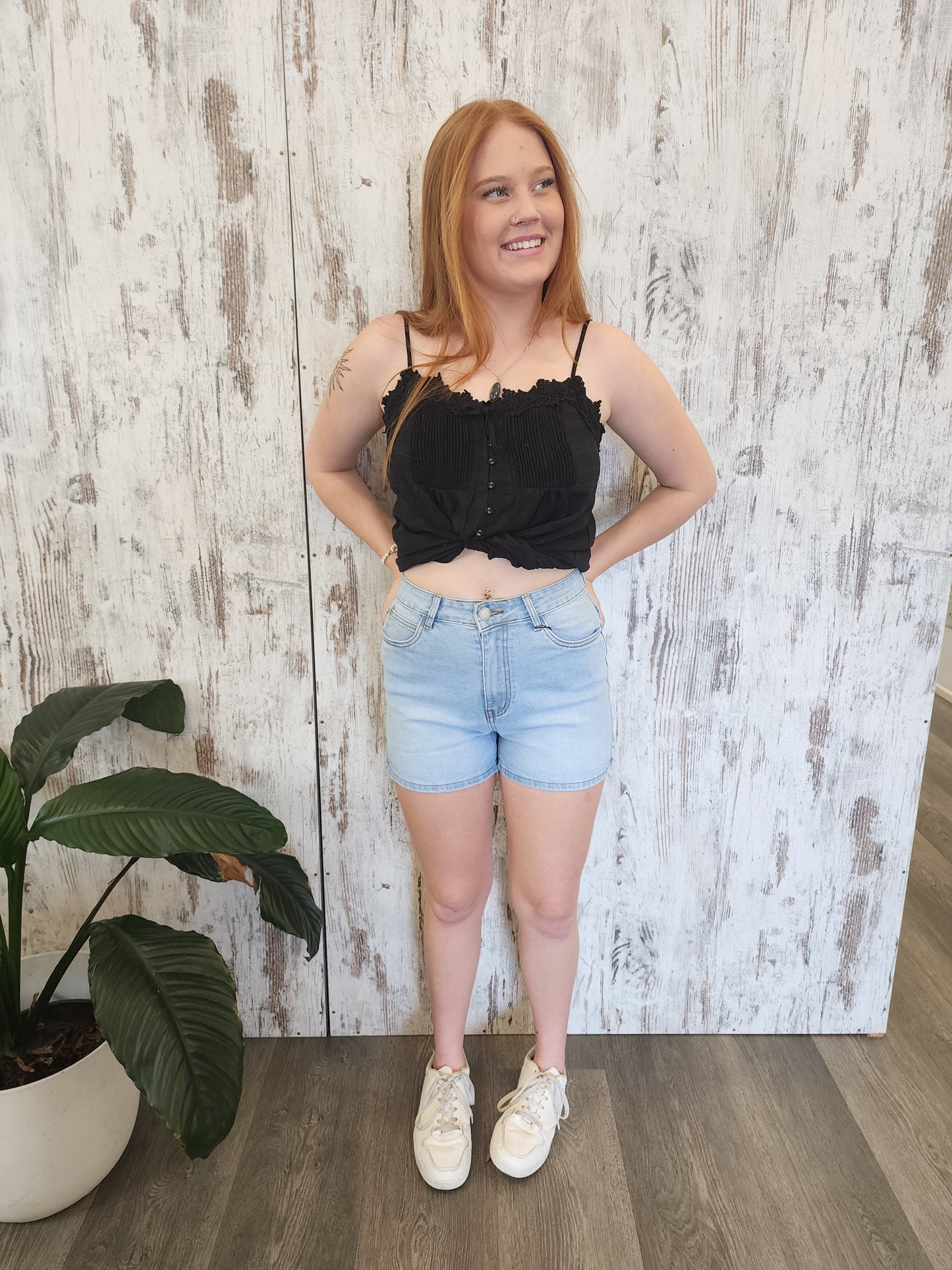 Fall in love with our latest Jemma Dark Denim stretch High Rise Country Denim shorts by Country Denim. For those in the know, these baby's are the most comfy shorts ever!. Perfect for everyday wear.