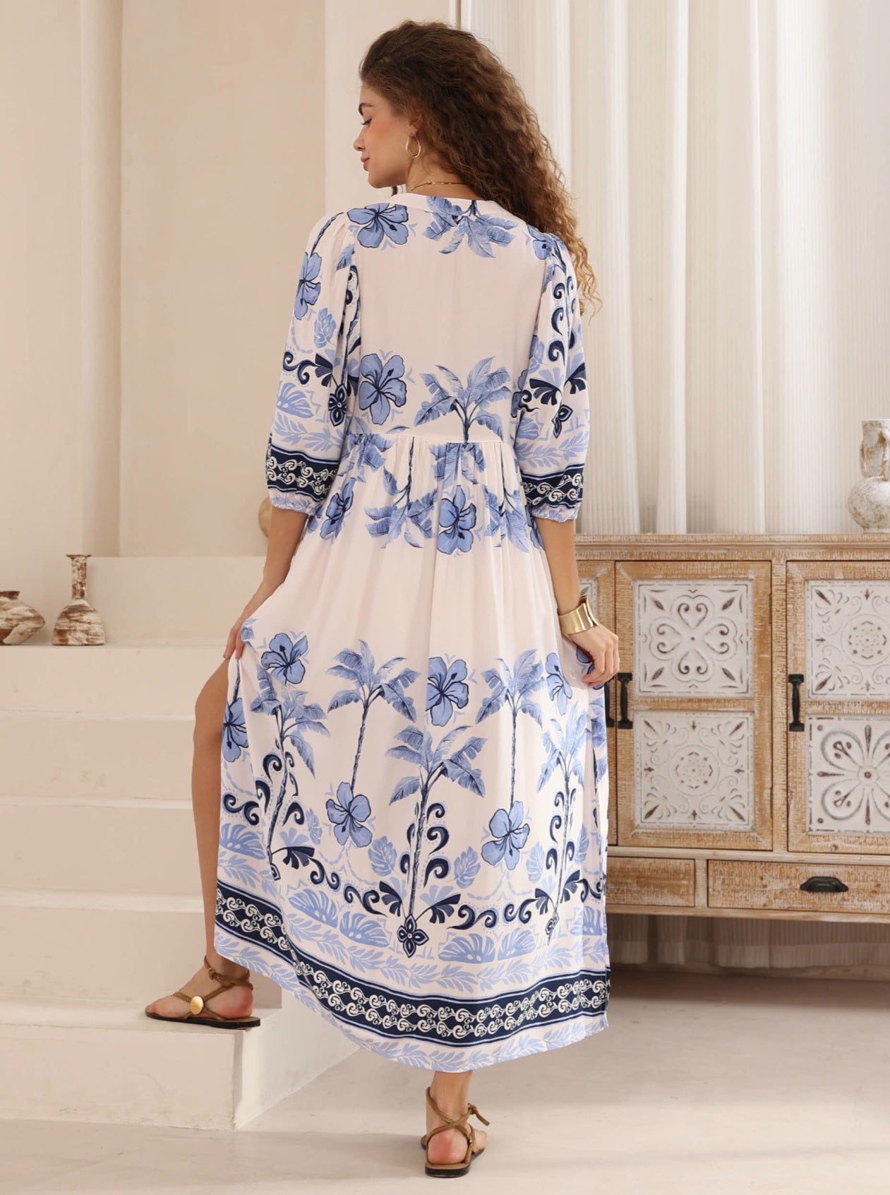 Iris Maxi Dee Maxi Dress with Pockets V Neck - Azure Palms