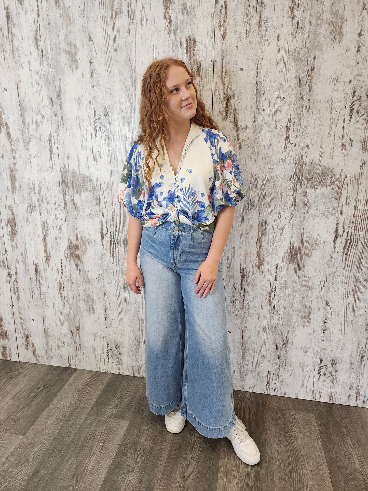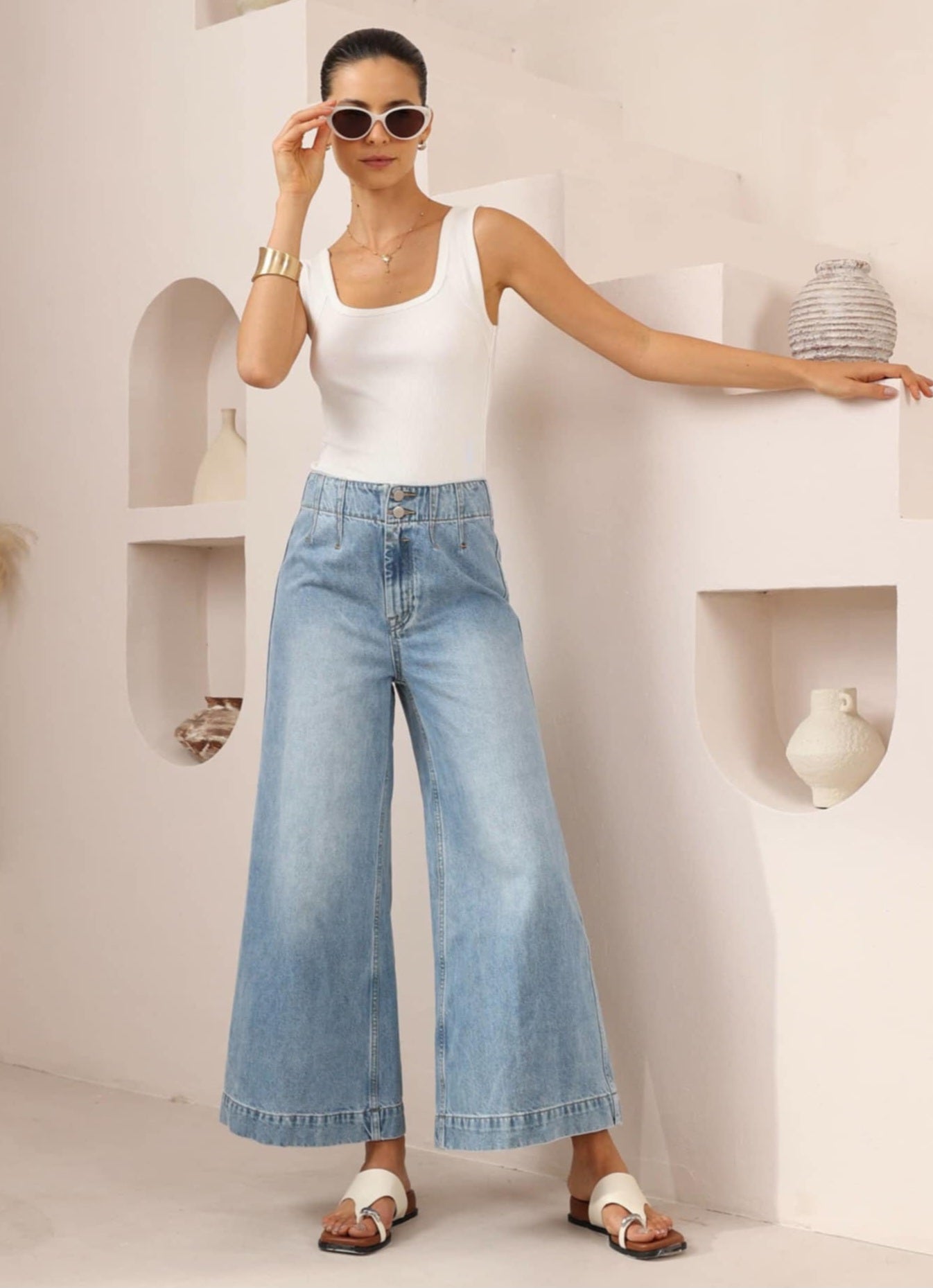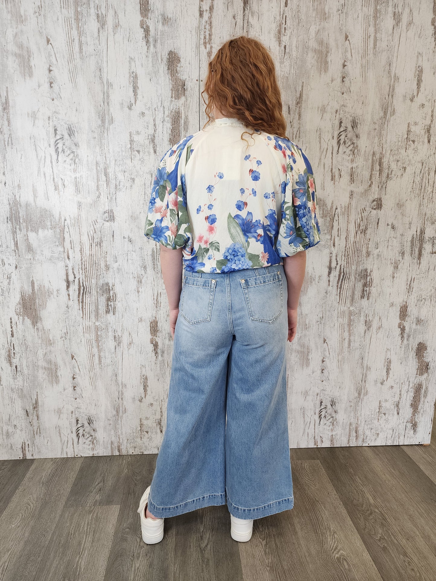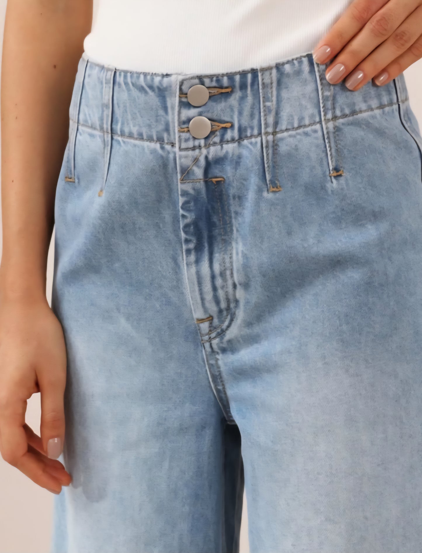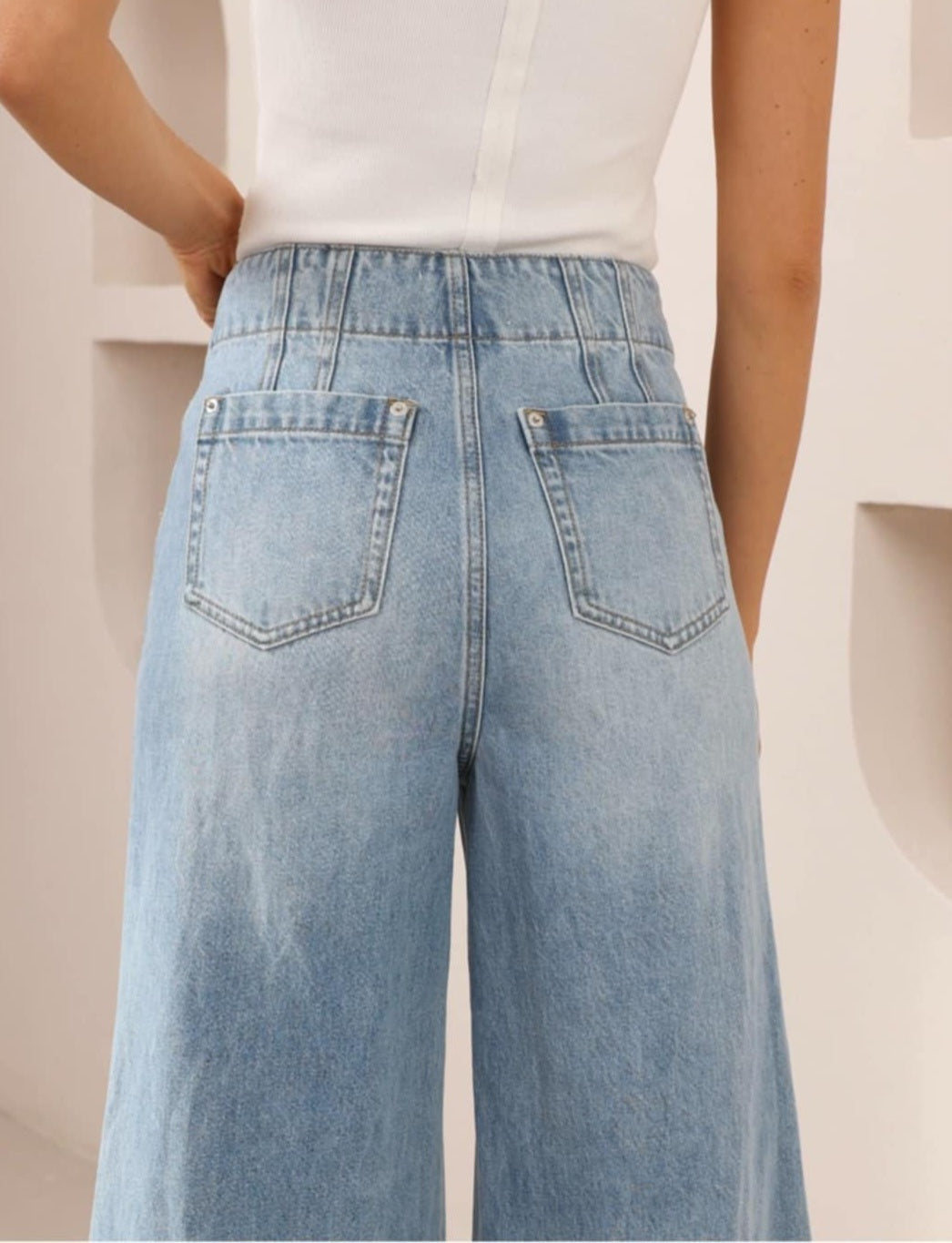 Iris Maxi Sophie Non-Stretch Mid- High Rise Wide Leg Denim Jeans - Light Blue - Style House Fashion