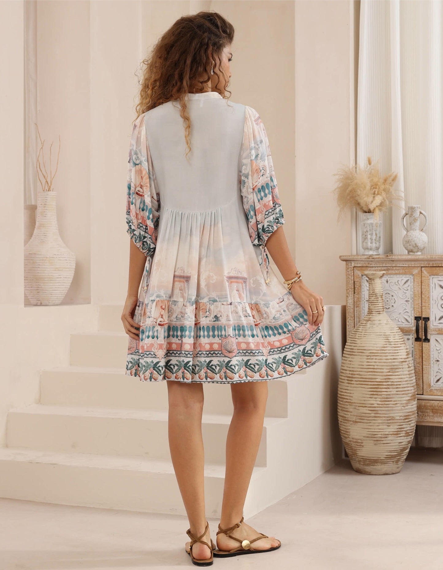 Iris Maxi Emma Mini Dress with V-Neck Buttons Pockets - Josephine