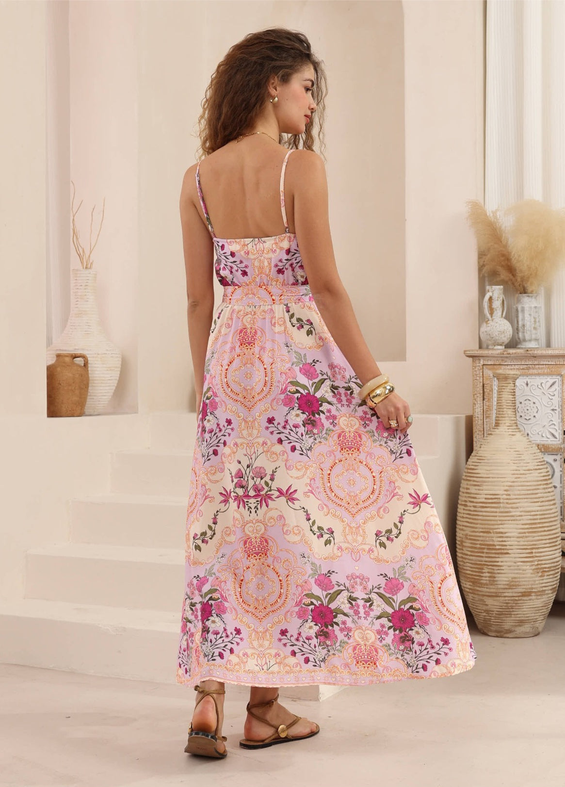 Iris Maxi Rosa Maxi Dress with Adjustable Straps V-Neck - Rosalyn