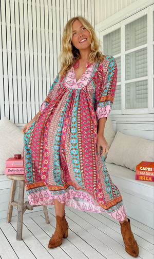 The Jaase Cedella Boheme Midi Dress is a statement Jaase piece to add to your wardrobe this season. Featuring this gorgeous exclusive JAASE placement print CEDELLA.