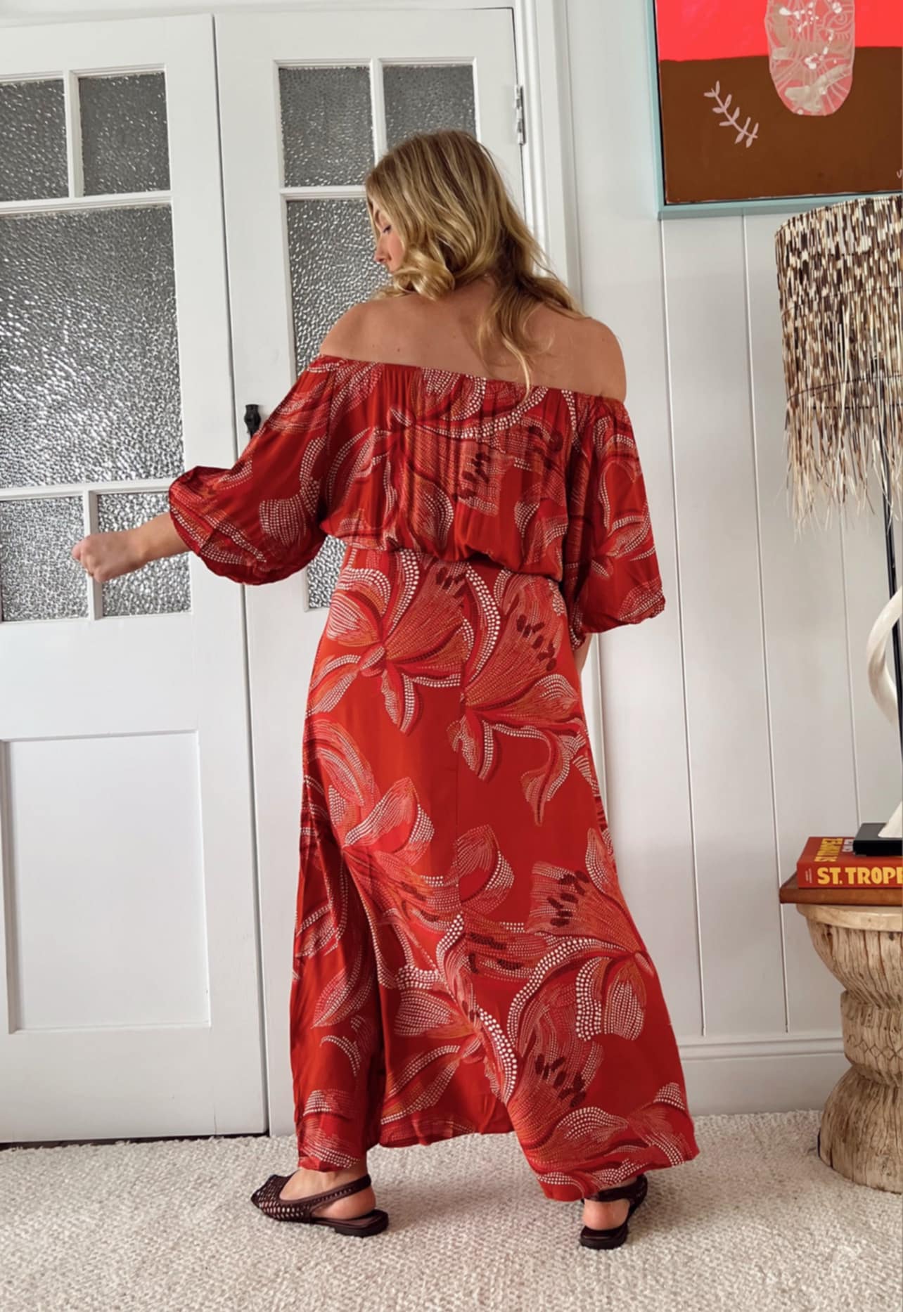 Make a bold entrance with our Hallie Maxi Dress By Jaase in the glorious HIBISCUS COLLECTION .